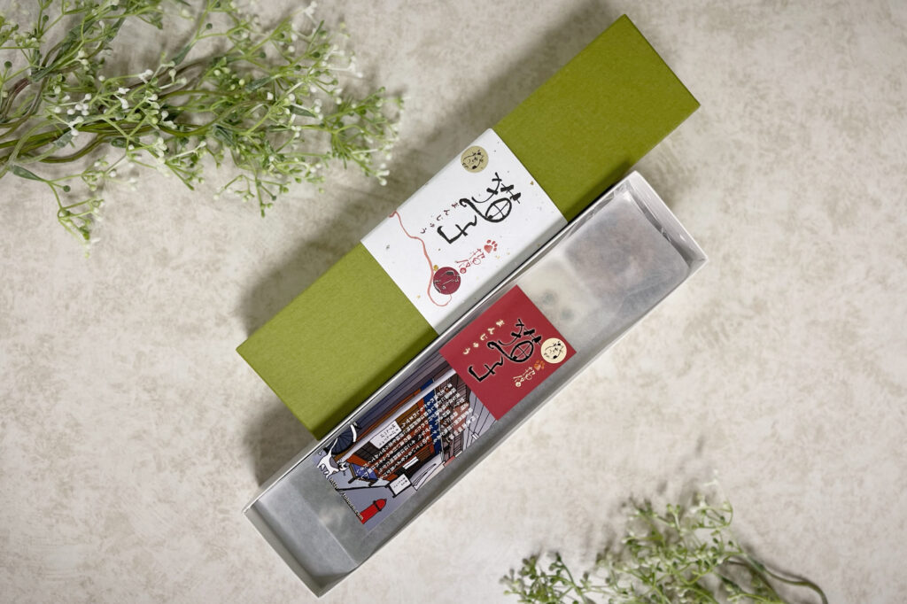 稲豊園は宮川朝市の場所から徒歩数分なので、朝市の帰りに買って帰ってもよし(お店で買うと単品購入もできます!)、5個入りの箱は高山グリーンホテル内にある飛騨物産館でも取り扱いがあったので他のお土産とまとめて買ってもよしです!