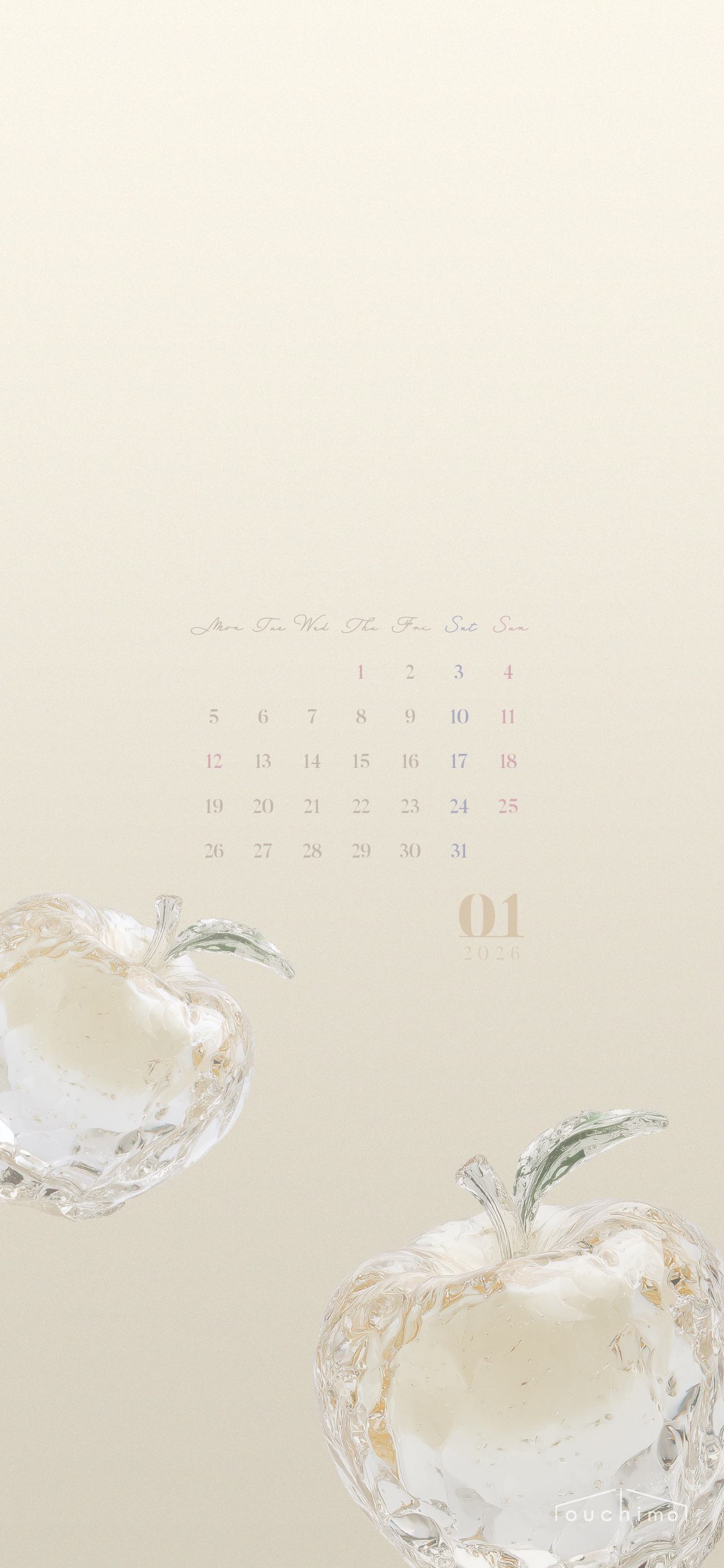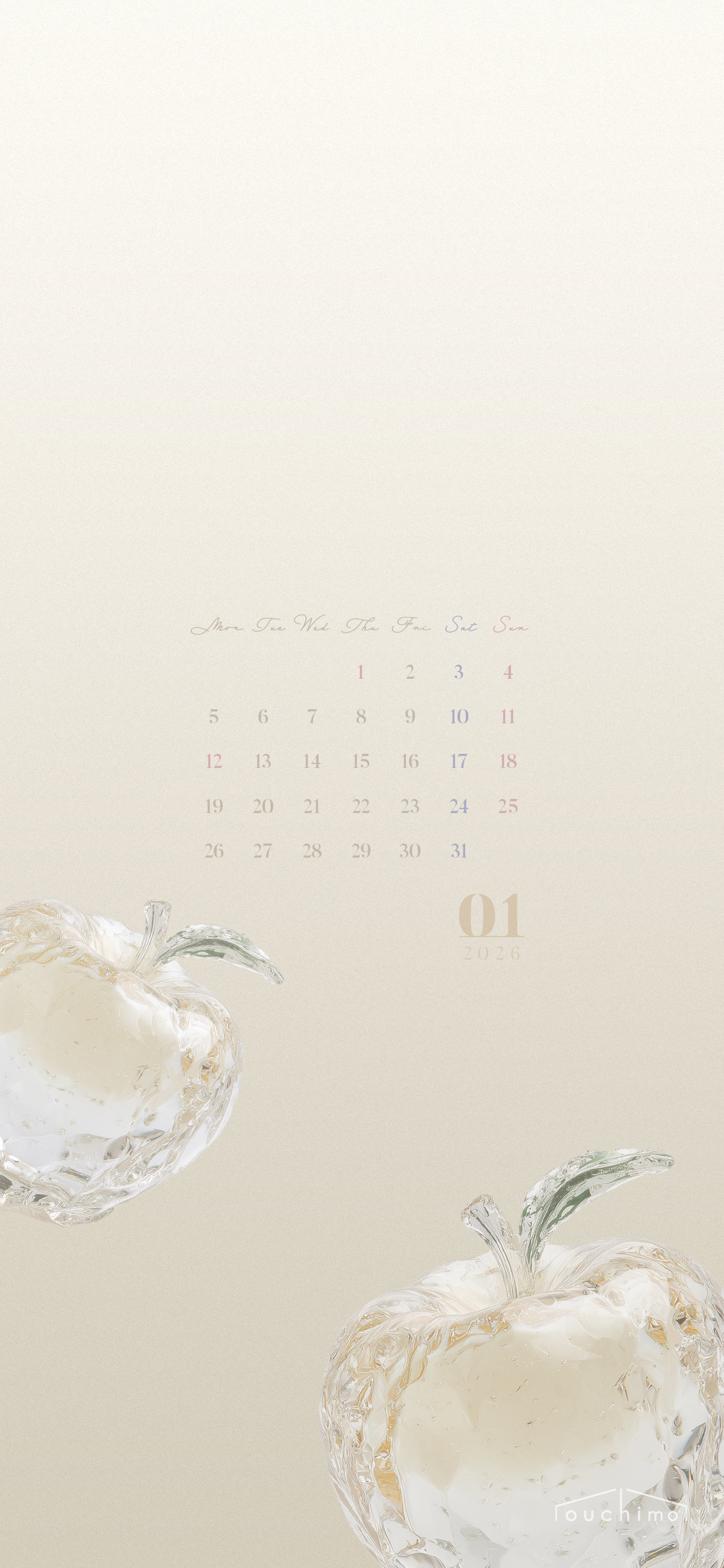 さて!2026年1月のカレンダーは、落ち着いたカラーにクリアな林檎柄で制作してみました!