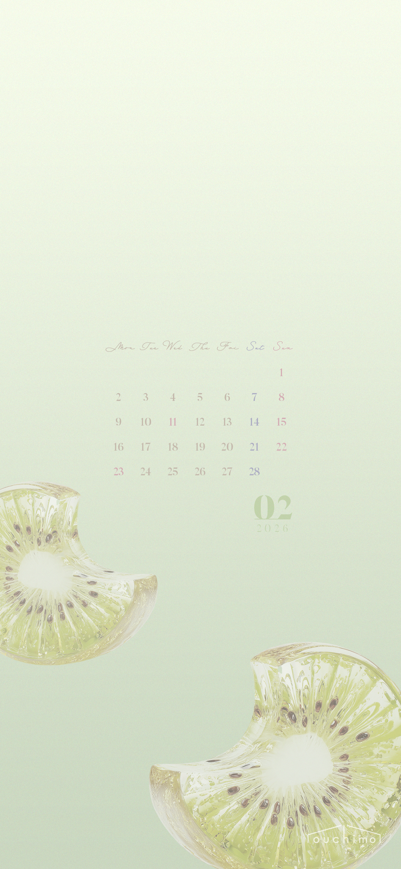 さて!2026年2月のカレンダーは、グリーンベースにクリアなキウイ柄で制作してみました。