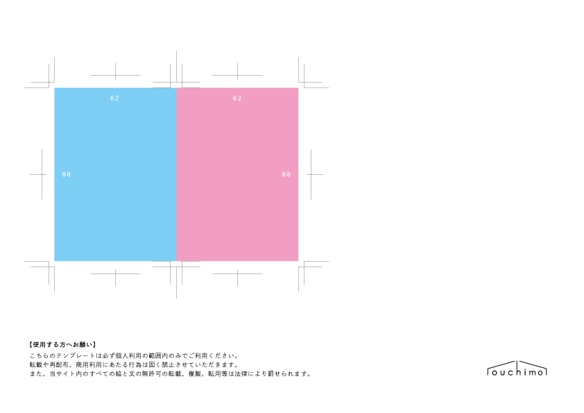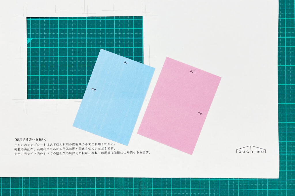 先ほどのテンプレートを利用し、断裁していきます。まずテンプレートを下記の図のようにカットします。
