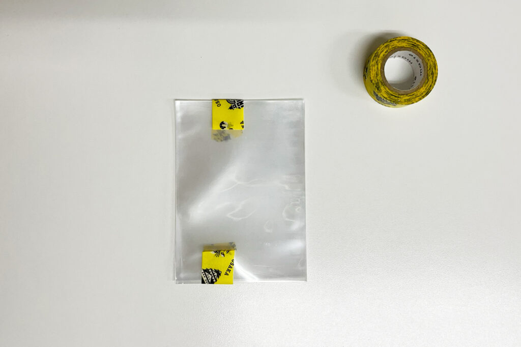 トレカスリーブを5枚程度まとめてマスキングテープで固定します。