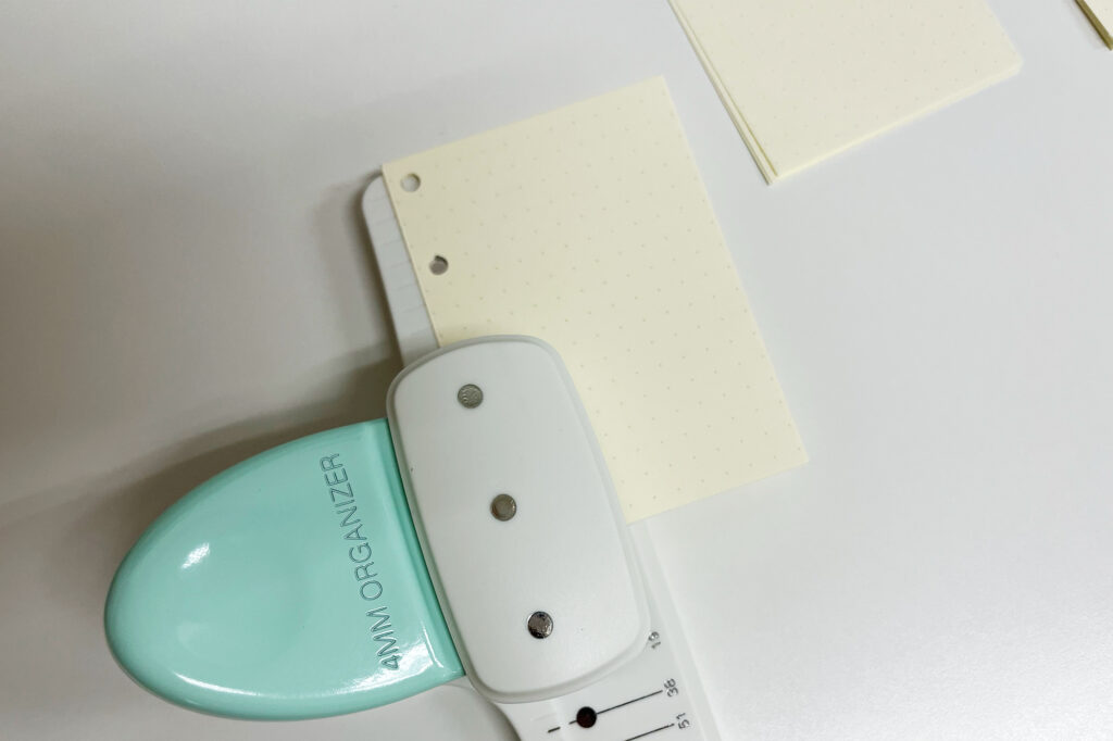 カットしたノートに穴を開けていきます。